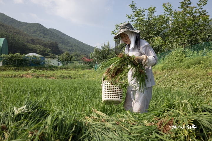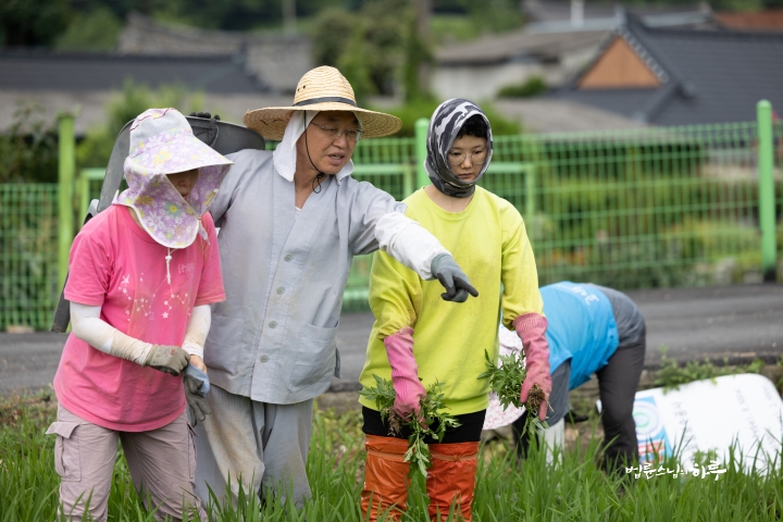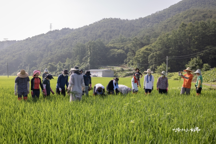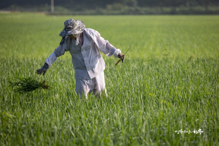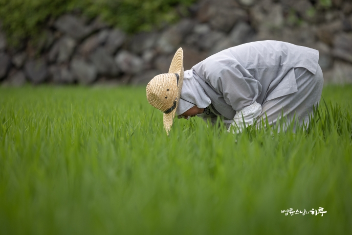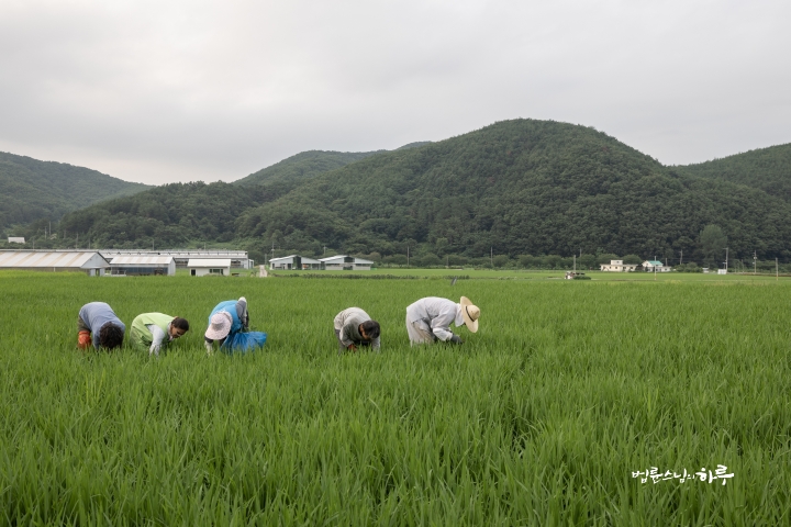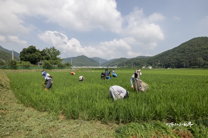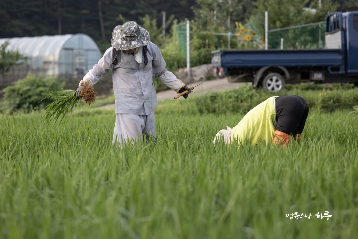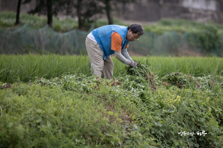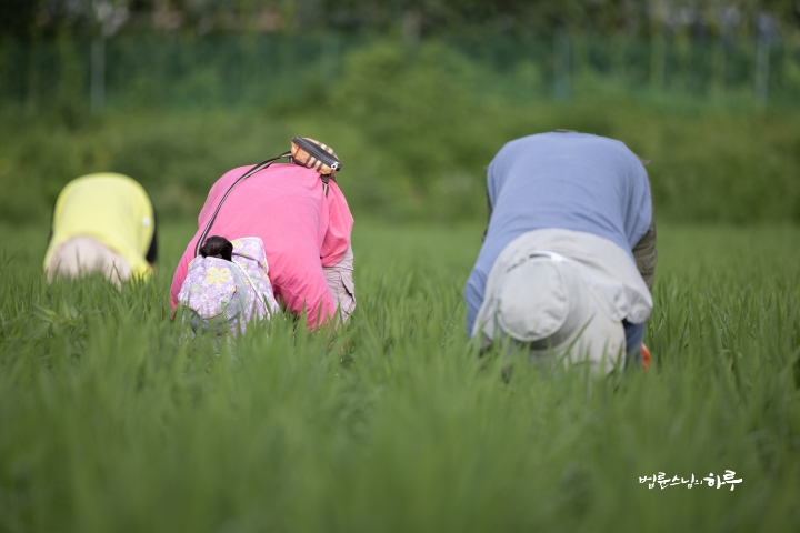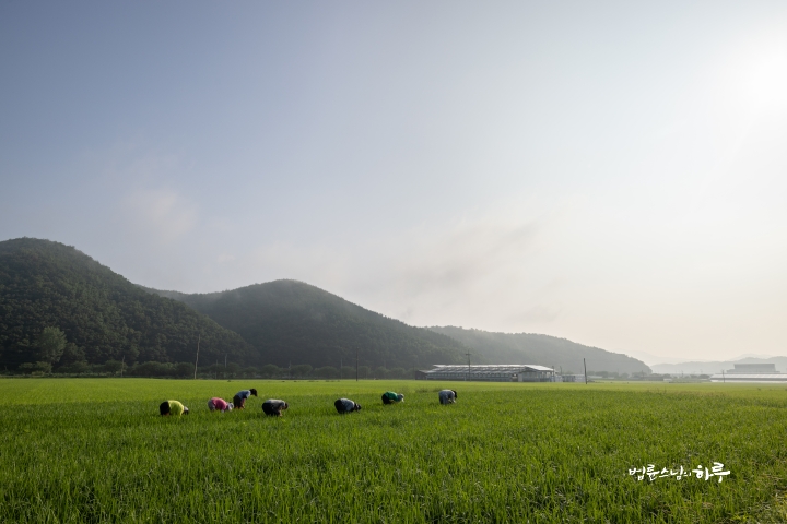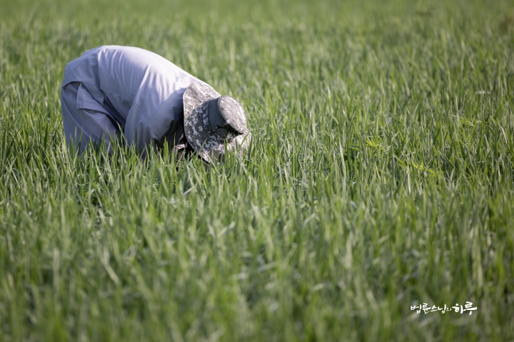 Weeding in the rice fields is to continue tomorrow. Tomorrow, Sunim will weed with others in the early morning, conduct a Dharma Q&A session at a forum called Happiness Square for the Korean Minutemen for Peace and Unification, and conclude the week by hosting the live-streamed Sunday Meditation with Ven. Pomnyun Sunim in the evening.