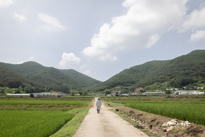 Sunim reached the other end of the rice field first.
