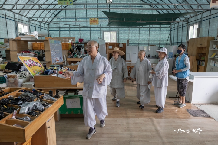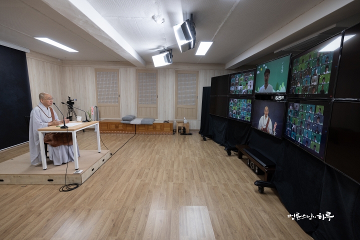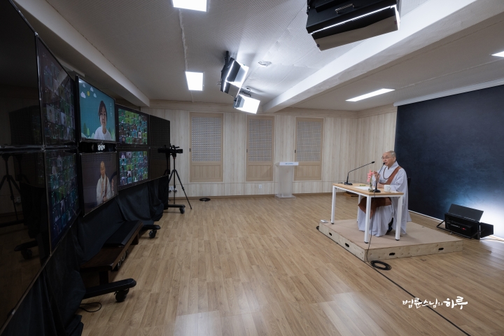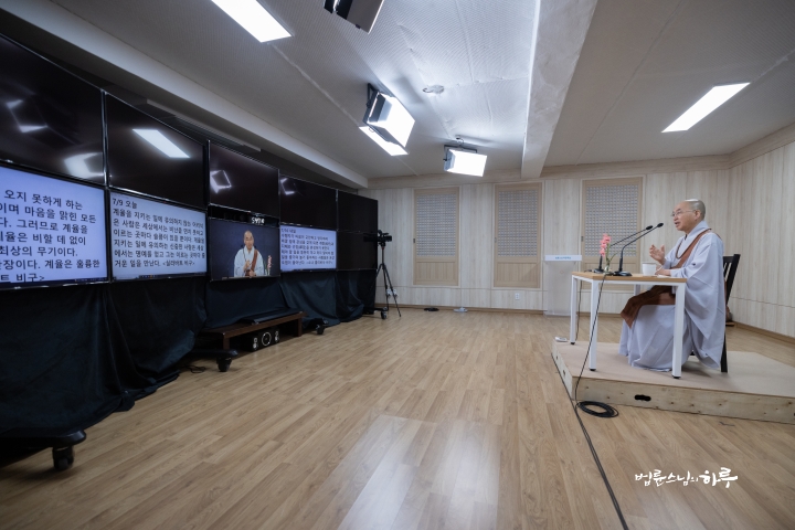 Sunim continued to work inside, away from the hot sun, during the day. At 4:00 pm, he once again took his seat before the camera in the studio.