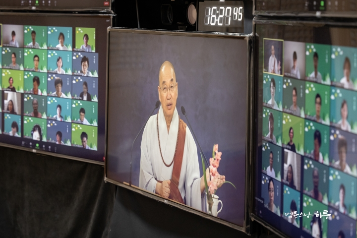 Today is a day that starts with the live-streaming of the 1,000 Day Practice. The practice began with the bell ringing, then Yebul ceremony (paying homage to all buddhas and bodhisattvas), Vows to the Threefold Refuge, Words for Practice, Repentance, 108 Bows, and Meditation.