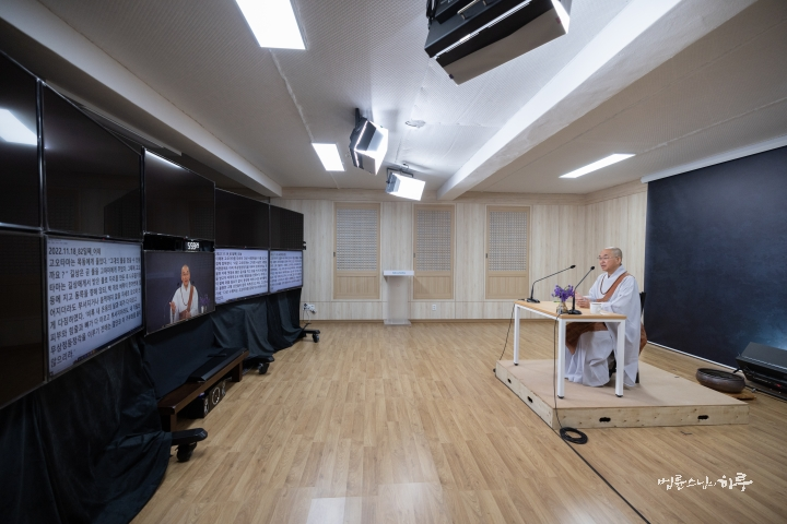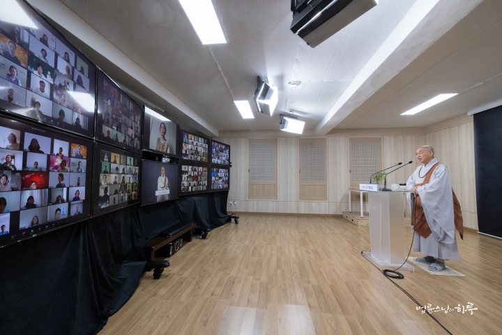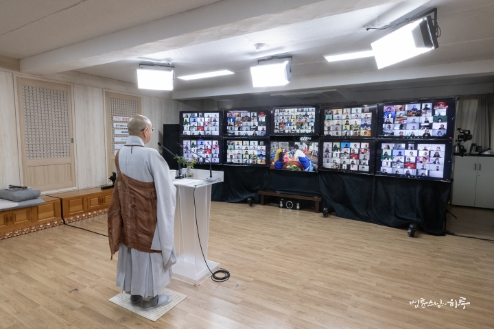 After giving a Dharma talk on today’s sutra reading, Sunim finished the live-streamed practice.