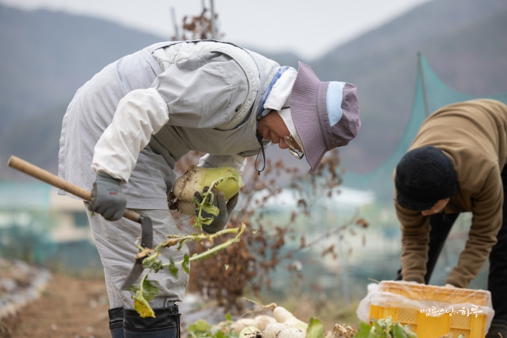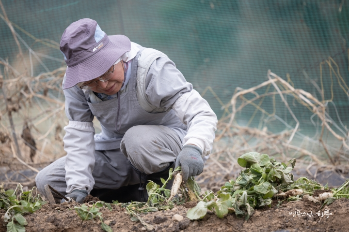 It was already dusk by the time all the radishes were harvested. Sunim proofread manuscripts and took care of other things that needed his attention before completing the day schedule.