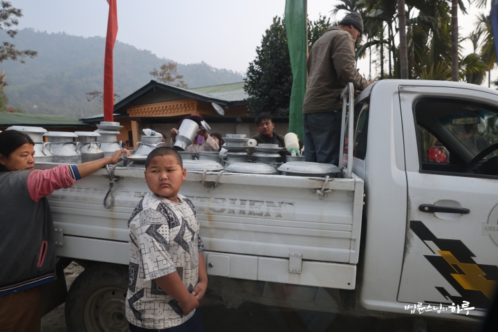 “In each village, there is a milk distributor who buys milk from each household and sells it collectively. In Bhutan, there’s a belief that encountering a pregnant woman, milk, or a milk container in the morning makes what one wants to accomplish for the day come true. I believe that what Sunim wants to accomplish today will be achieved.”