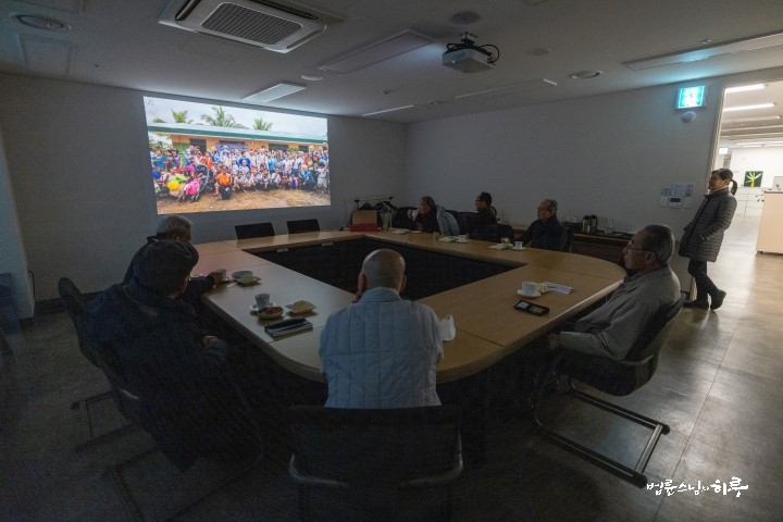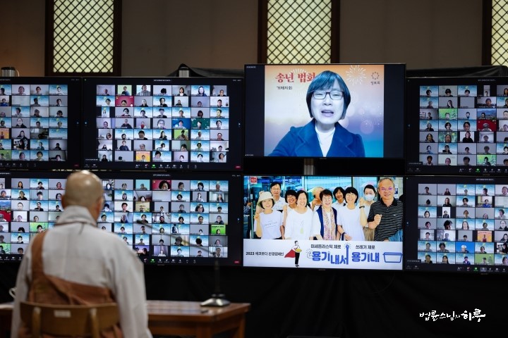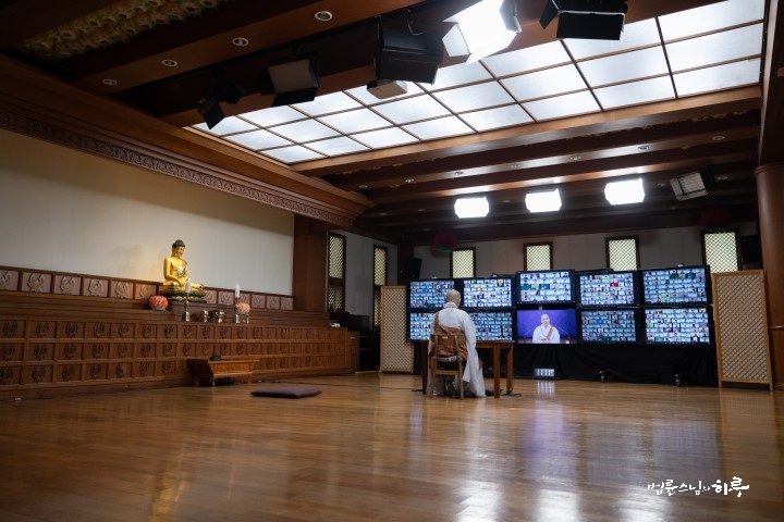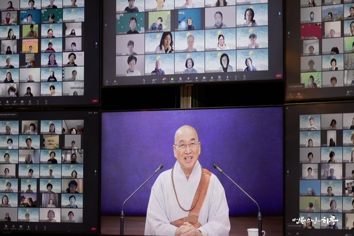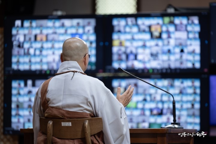 At 10 am, the Dharma meeting was live-streamed for the members of Jungto Society who were online in their respective video conference rooms. Today’s Dharma meeting was intended to wrap up the year.