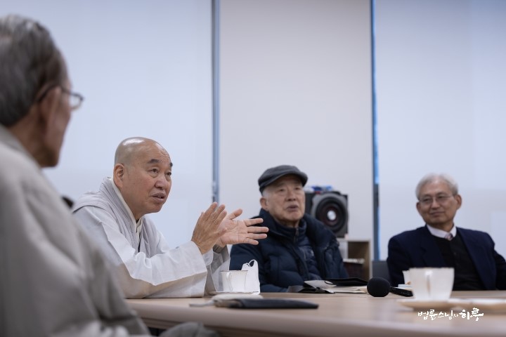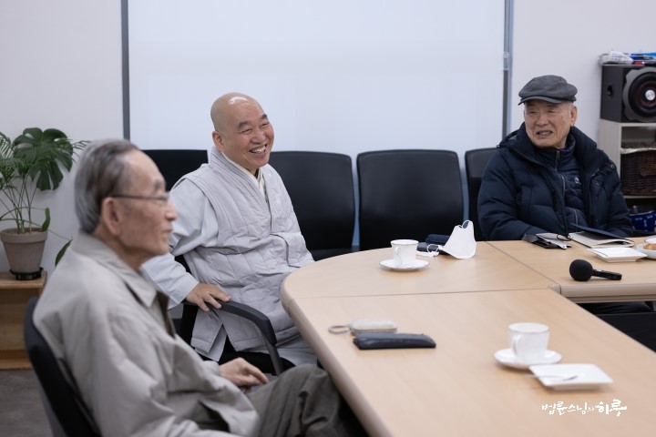 “Ven. Pomnyun Sunim is the one who endures the most hardships; perhaps because of this he is the happiest. I think Ven. Bulsim Domun Sunim must be truly happy to have a disciple like him.” “I am also very proud to have monthly meetings with Ven. Pomnyun Sunim, who is engaged in such admirable activities. In fact, he is doing the things that we should be doing on our behalf.” Upon hearing their joyful comments, Sunim responded with a smile,