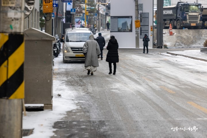 As we engraved Sunim’s Dharma talk in our hearts, the year-end Dharma meeting concluded with the recitation of the Four Great Vows. Subsequently, members of Jungto Society engaged in various programs to bid farewell to the current year in the video conference rooms of their respective chapters. A cold spell has gripped the nation, bringing daytime temperatures below minus 10ºC. In the afternoon, Sunim took care of various tasks indoors.