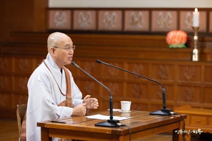 “From a broader perspective, whether a lot of people live in Mindanao, whether Christians or Muslims live there, whether they perish in a war or live in peace, it doesn’t matter. We need not be angered or distressed by it. When you grasp the principle of ‘form is emptiness,’ you can maintain the state of nirvana without wavering. In our daily lives, however, we should refrain from recklessly cutting down even a single tree. We should provide learning opportunities for children, shoes to those without them, food to the hungry, and medical treatment to the sick. We should strive to halt wars if they occur, and help people to live peacefully without discrimination. Everything is empty, yet according to causes and conditions, everything requires specificity. While comprehending the emptiness of all phenomena is known as the Wisdom Eye, understanding that emptiness manifests in specific forms is referred to as the Dharma Eye or the Buddha Eye. “Bodhisattvas address the illnesses of sentient beings according to their capabilities and conditions. This means that bodhisattvas fulfill sentient beings’ needs according to their conditions rather than satisfying all their wishes. This implies the necessity of careful examination and execution when performing a task. For instance, when making kimchi, we must meticulously decide on factors such as the salinity of water used to soak cabbages, the duration of soaking, the types and amounts of ingredients, and so forth. Each person can have a different view on these matters. While the overarching principle of ‘form is emptiness’ holds universality, the principle of ‘emptiness is form’ entails specificity. “When performing a task, technical expertise and profound knowledge are not always needed. However, the ability to comprehend the situation to gain intuitive insights is crucial. Therefore, when undertaking a task it’s essential to first assess the situation and determine the sequence of actions. The correct sequence is paramount in task execution. For instance, when planting seeds, fertilizer must first be applied, followed by plowing the land, and then planting the seeds. Weeding in a timely manner can significantly reduce your workload. In a similar vein, everything has a correct sequence. There is a Korean saying that goes: ‘If you are not smart, your hands suffer.’ This means that with proper timing your workload is reduced, but if you miss the right timing your workload increases. “The fundamental perspective required for practice isn’t much different from this. However, some individuals, while claiming to be engaged in practice, fail to grasp the principle that all phenomena are empty. They struggle within the perpetual cycle of worldly existence. Conversely, there are also many people around us who, lacking an understanding of the principle that emptiness is form, utter hollow words. Practitioners are not meant to be numb without any feelings or thoughts. Regardless of the task at hand, we shouldn’t become overly attached or indifferent. Setting aside concerns about our performance, it’s essential to give our best effort in any situation.”
