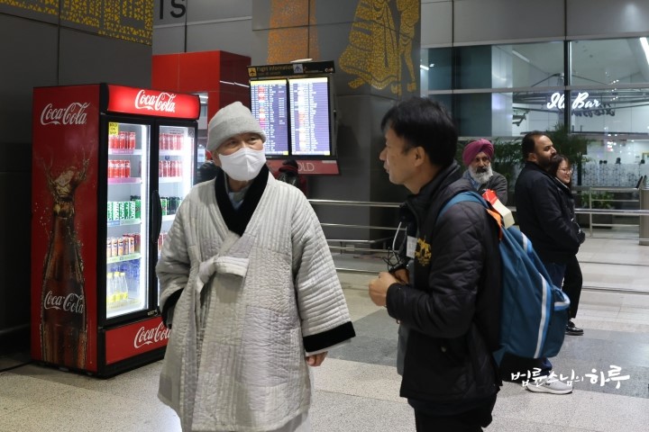 Today, pilgrim team A, consisting of around 150 people, will arrive at Delhi airport at 5 pm. To greet them, several staff members headed to the airport, and Sunim also headed there at 5:30 pm. When he arrived, the pilgrims were going through the immigration process.