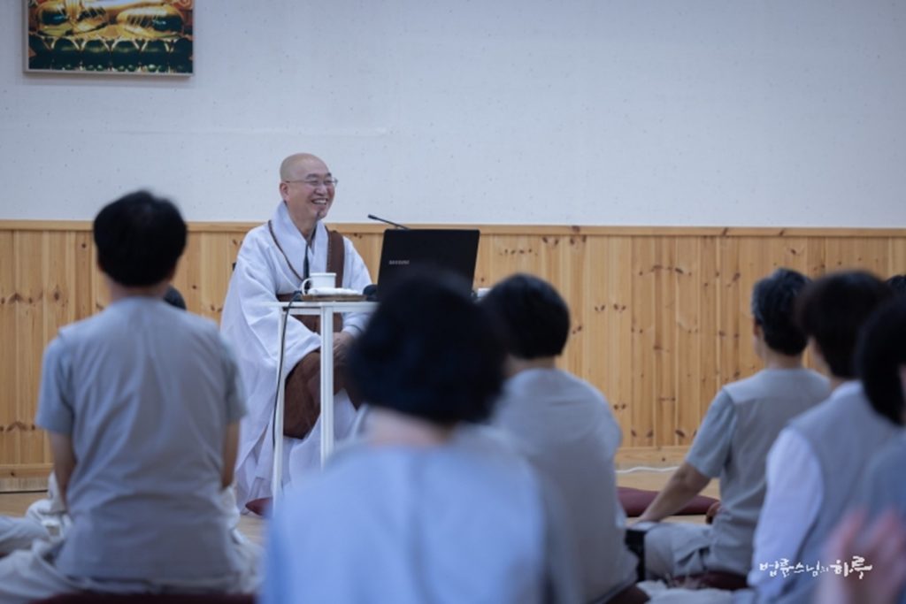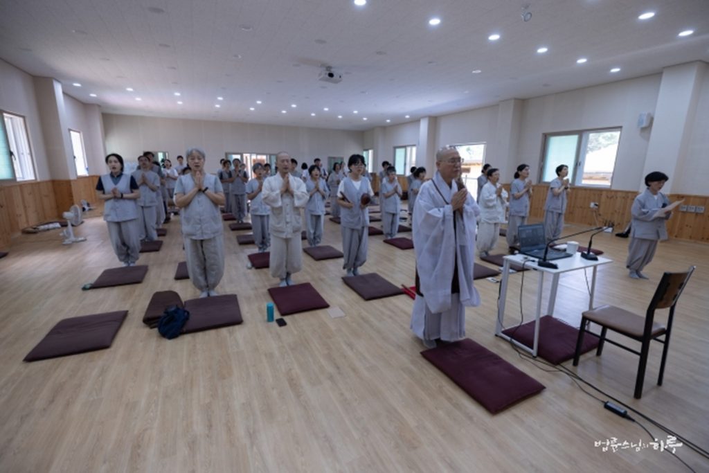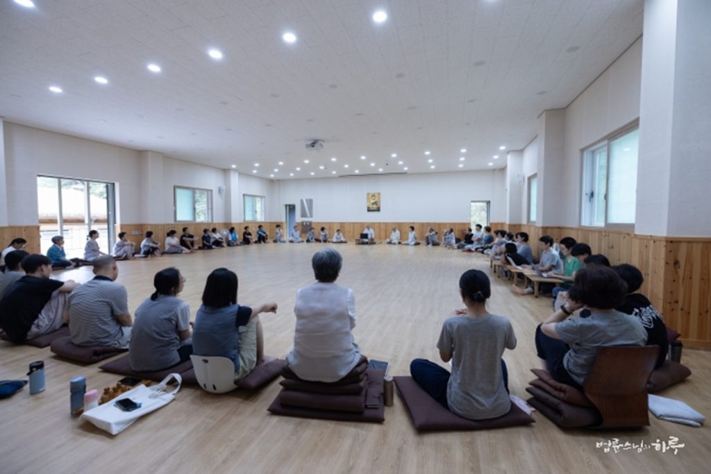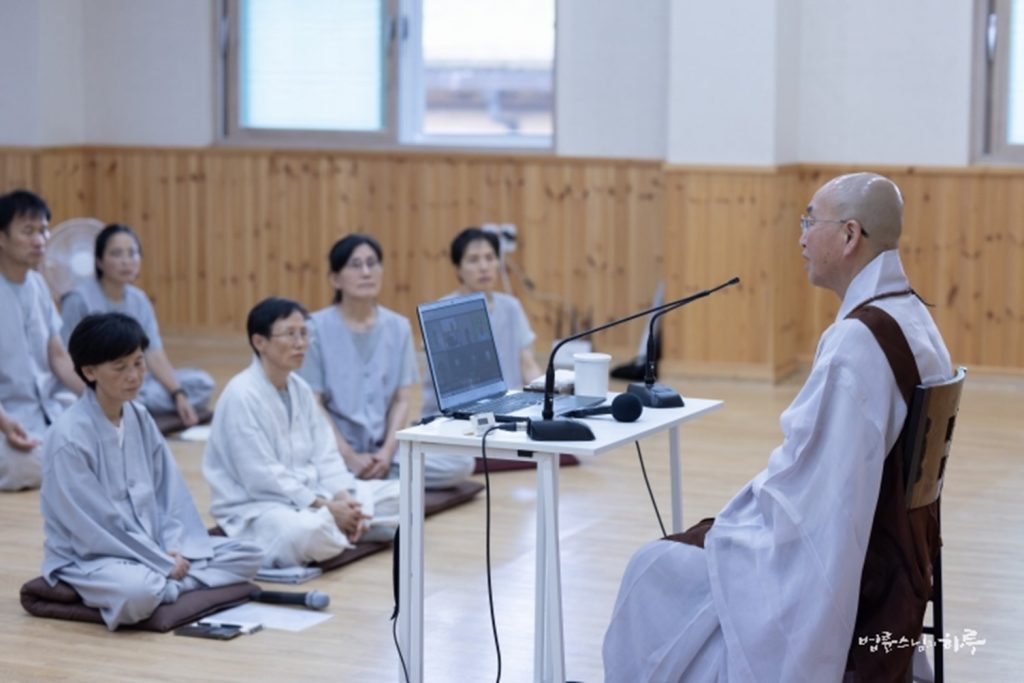 Hello! Ven. Pomnyun Sunim completed his 15-day summer retreat and returned to his daily routine. During the summer retreat, Sunim led an online meditation retreat for 900 participants at Mungyeong Jungto Retreat Center. After completing the online retreat, he moved to Bonghwa Jungto Retreat Center, where he continued his retreat with around 50 sangha members.