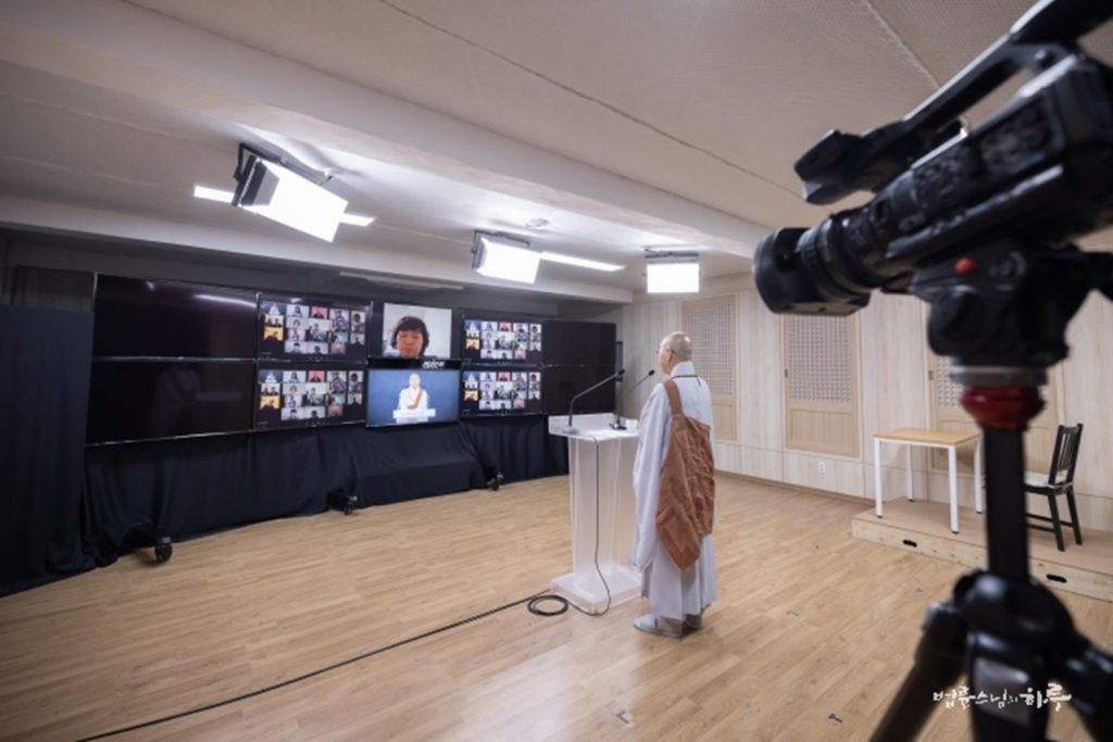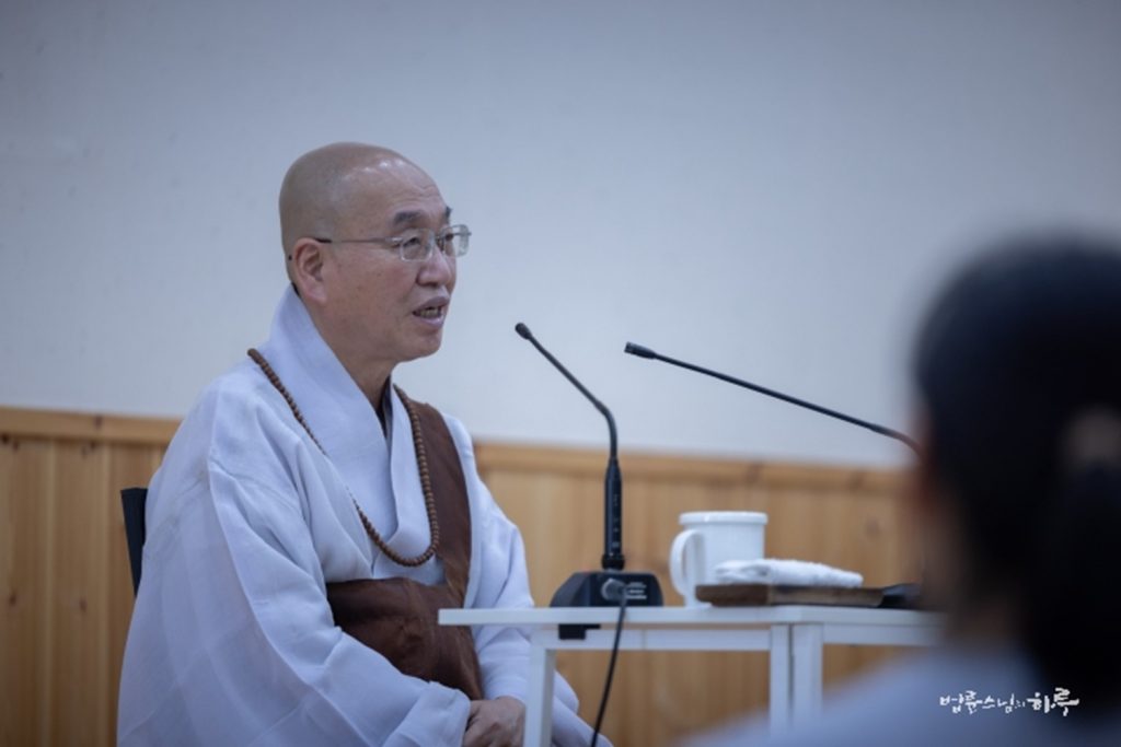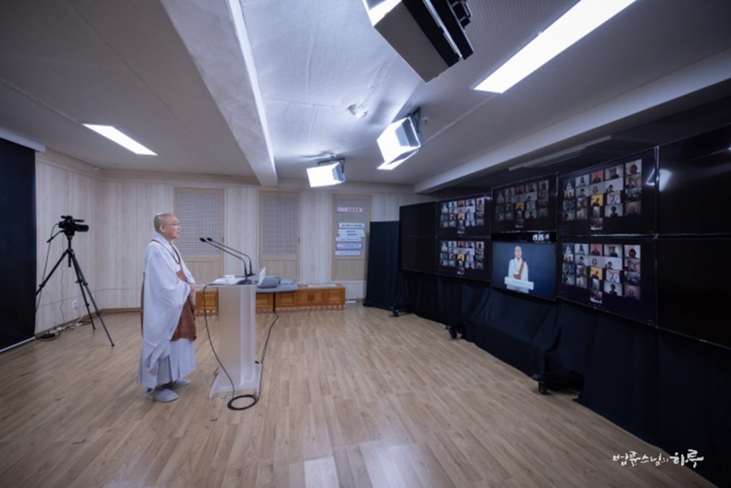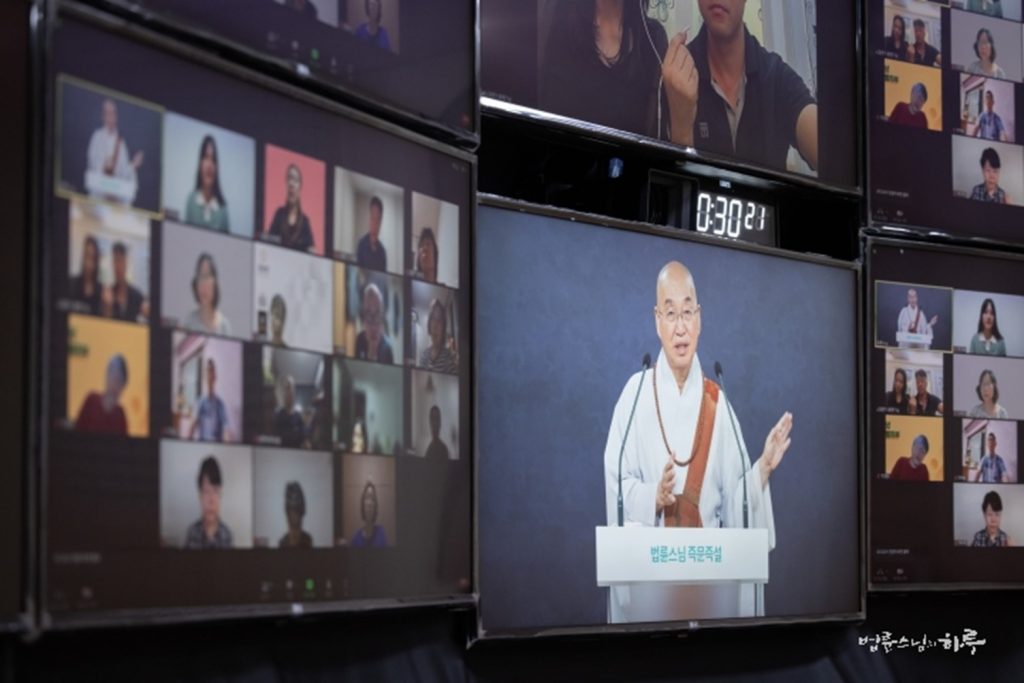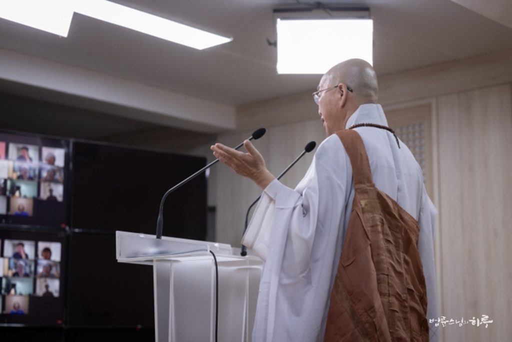 Hello! Ven. Pomnyun Sunim completed his 15-day summer retreat and returned to his daily routine. During the summer retreat, Sunim led an online meditation retreat for 900 participants at Mungyeong Jungto Retreat Center. After completing the online retreat, he moved to Bonghwa Jungto Retreat Center, where he continued his retreat with around 50 sangha members.
