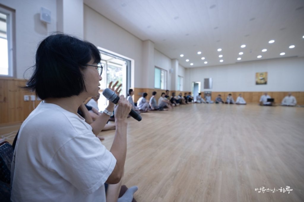 “During the retreat, I personally experienced the Four Noble Truths. Until now, I hadn’t realized that the feeling of suffering was indeed suffering when it arose. I feel lighter after hearing Sunim’s response to my question, which suggests that attachment is ultimately the cause of suffering. In the past, I only became aware when the teacher pointed it out, but now I feel confident that I can free myself from suffering on my own.” “I’ve missed out on many experiences simply because I hesitated, doubting my ability to accomplish them. After listening to Sunim’s concept of creating a model for future civilization through a development project in Bhutan, I came to understand the importance of embracing a ‘try-first mindset.’” After spending two hours sharing their feelings and impressions, the sangha members requested Sunim to give a Dharma talk to mark the completion of the retreat with three prostrations.