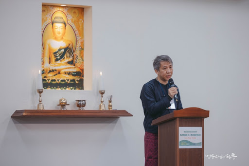 “Corporations and nations are reaping huge profits from wars that kill millions of people. Recently, right-wing extremism and fascism have been emerging around the world. I think that, ultimately, economic polarization and inequality are their causes. Under such circumstances, how should Buddhism, which pursues non-violence, deal with such violence in the world? I think relying on elections and democracy is not enough. I think our dedication and moral accountability are needed.” He emphasized that climate change has not caused the same degree of suffering for everybody; it has caused more suffering for poorer people. He threw out a question: “How should we deal with the reality of ‘karma’ being misused to justify structural violence in Myanmar?” He concluded his speech by quoting Ven. Pomnyun Sunim.