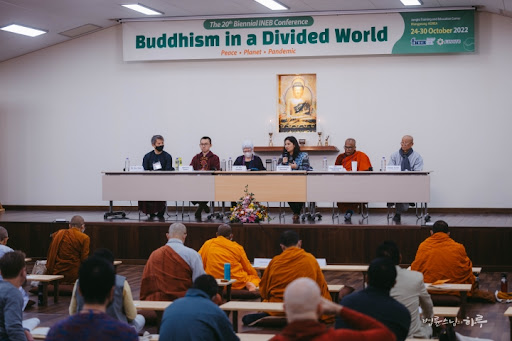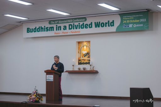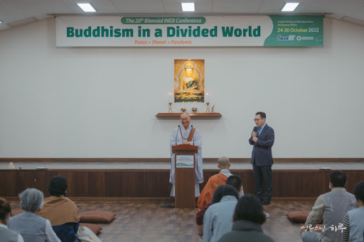 “This is the first in-person INEB Conference since the outbreak of COVID-19. I sincerely welcome the Fourfold Sangha of bhikkhus, bhikkhunis, upasakas (male lay practitioners), and upasikas (female lay practitioners) to the INEB conference. “Various parts of the world are suffering from natural disasters caused by climate change. People around the world have suffered enormously, especially due to COVID-19. And we are now entering into a new cold-war era due to the Sino-American clash of hegemony, and the Russia-Ukraine war. Moreover, many people are suffering financially because of the weakening of various currencies relative to the dollar, and a sharp rise in prices and interest rates.