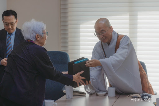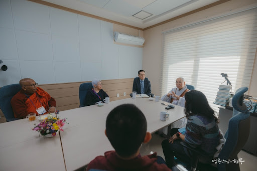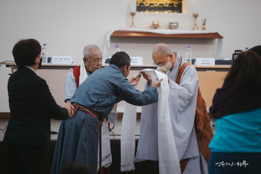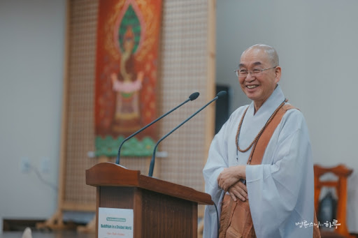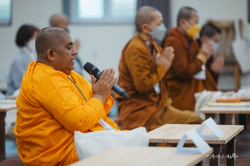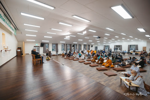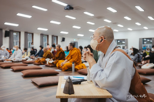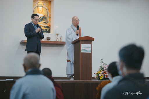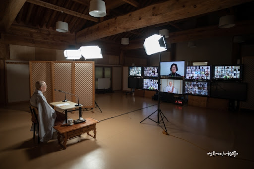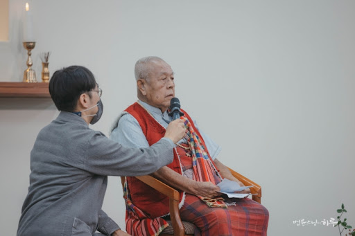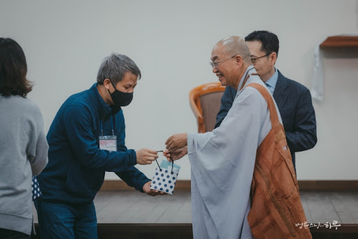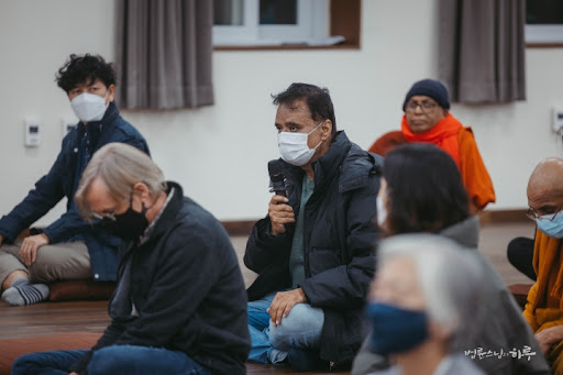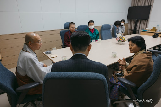 “On the visit yesterday to the Dubuk Jungto Center, I was very inspired by the work that has been done there. I was wondering if you could share a bit about the Dharma teachings behind that generosity and the work that has been done at the retreat center. If you can share about the dharma teachings that inspired that work.” “I understand that you have given aid to North Koreans in the past. I’m just curious if there is a law against South Koreans giving aid to North Koreans. How do you manage that? How do you manage to overcome the legal restrictions?” “I was wondering if you have started teaching online before the pandemic or due to the pandemic.” After answering these questions, Sunim expressed his opinion on the issues discussed in the morning.