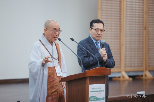 “Ven. Pomnyun Sunim said as follows: If it is the right path, we should follow it regardless of the results. No matter how wonderful the Buddha’s teachings are, if they can’t remove people’s suffering, they are useless. That concludes my presentation.” (Audience applauds)
