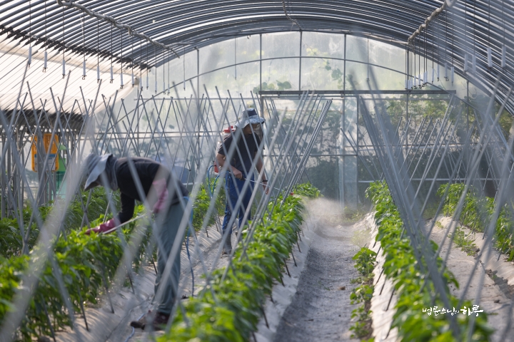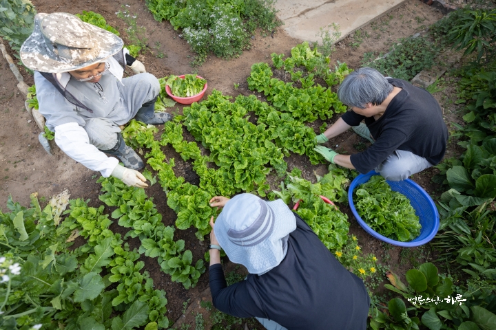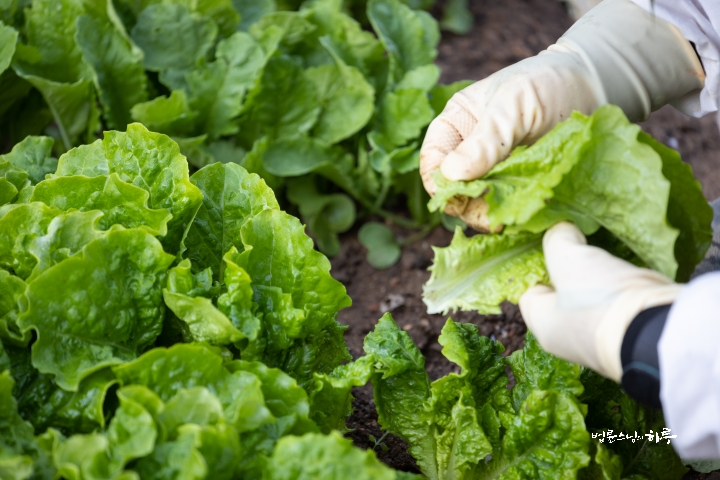 “I’ll harvest lettuce from this row. Myodeok Beopsanim and Haengjanim, please harvest lettuce from other rows.”