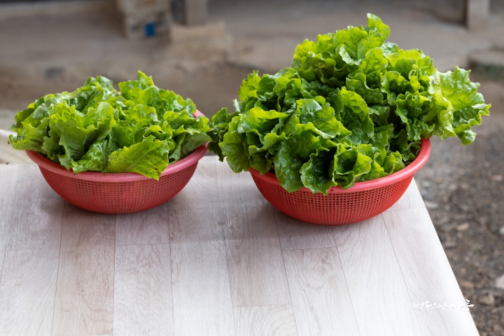 Sunim then decided to harvest some fresh vegetables to take to Seoul in the evening. In the vegetable garden, the lettuce has been growing rapidly.