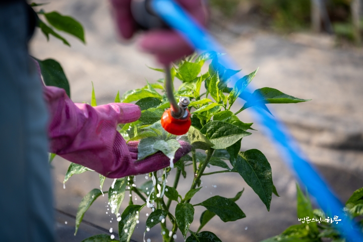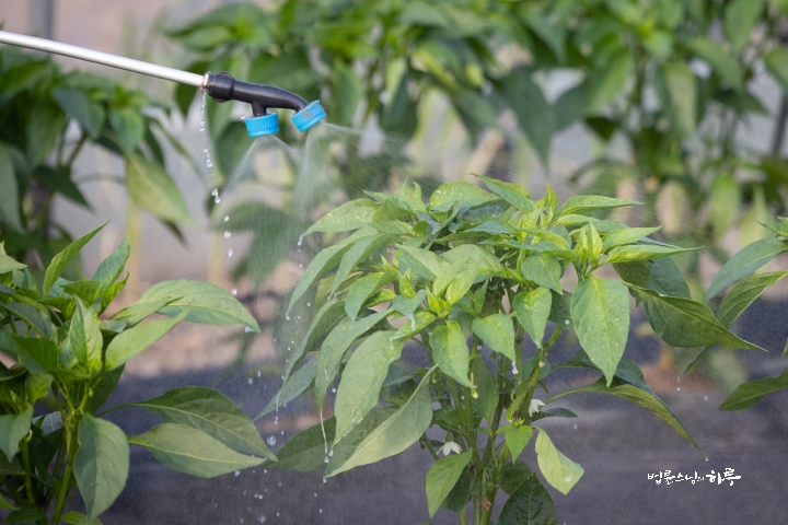 “We’ve prepared an organic pesticide, please spray the pesticide thoroughly on the upper and lower sides of the pepper leaves.”