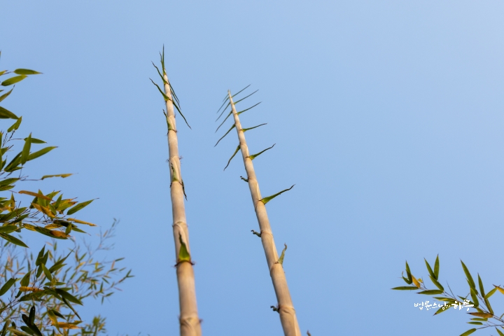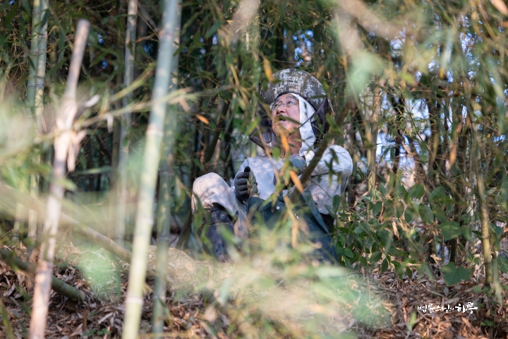 After finishing the morning practice and meditation, Ven. Pomnyun Sunim changed into work clothes and went up to the bamboo forest. There he began harvesting bamboo shoots before the sun rose high.