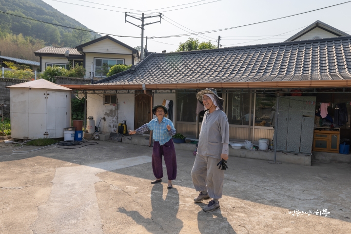 After resting for a while, Sunim visited an elderly neighbor at around four in the afternoon. She has been growing crops in the field, but due to the drought, they were in need of water, so she asked for help to connect a hose to her field several days ago.