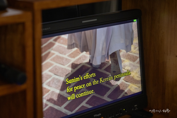 Before the conversation began, a video was played showcasing Sunim’s trip in early May to Washington, D.C., where he met with government officials, members of the legislative branch, and thinktank representatives to advocate for peace on the Korean Peninsula.