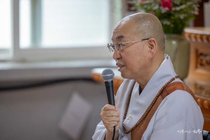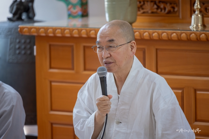 “Yesterday, while talking with the young members of Jungto Society, I was greatly inspired. They seemed to have been greatly influenced by you. I couldn’t help but think that you serve as both the motivation for them to join Jungto Society and the driving force for their continued work. Therefore, I became concerned about what would happen to Jungto Society when you are gone. I wonder if you have any thoughts or plans regarding this matter.”
