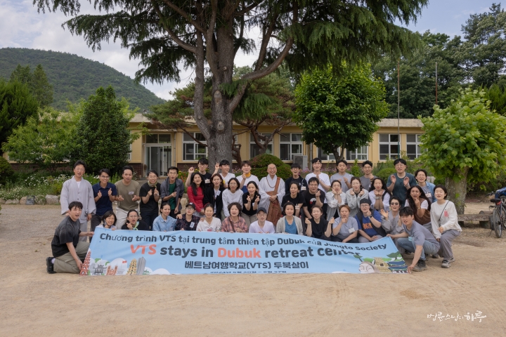 Hello! Daybreak has arrived at Dubuk Jungto Retreat Center. Today, Ven. Pomnyun Sunim will spend time with VCIL Travel School (VTS) activists from DaNang, Vietnam.