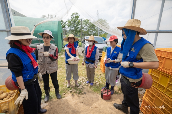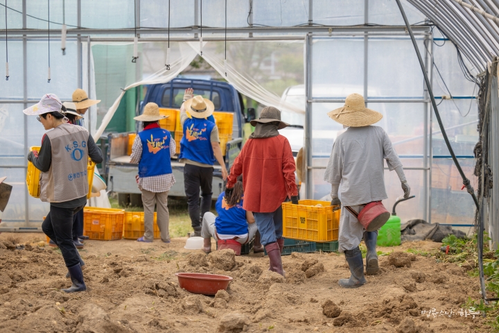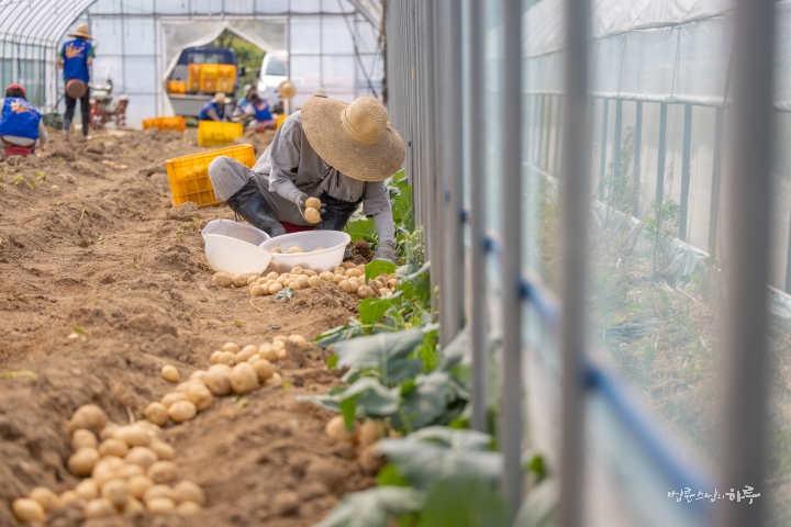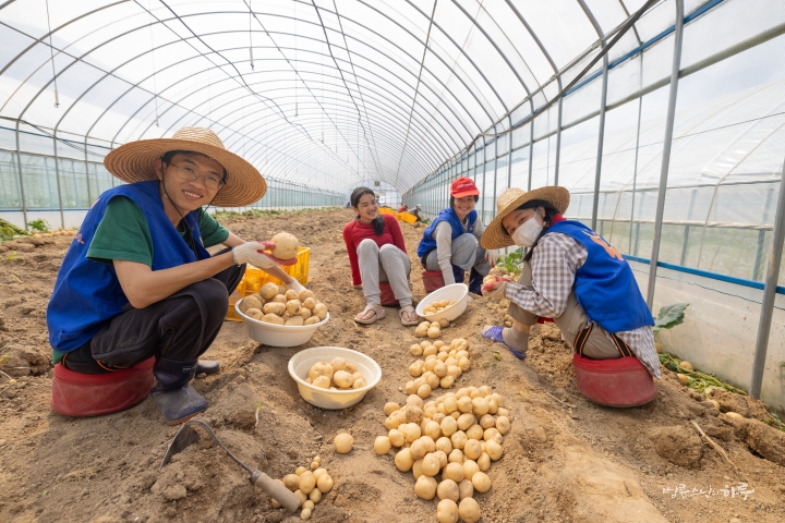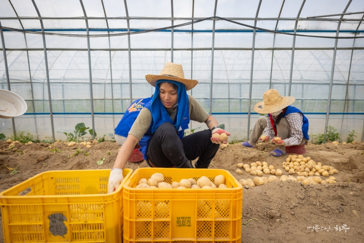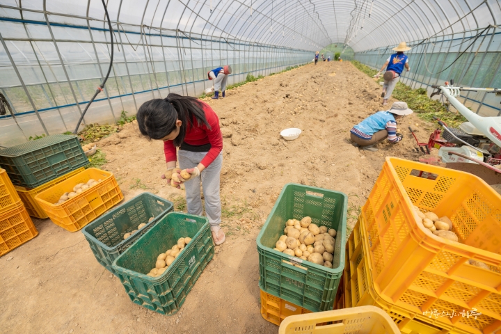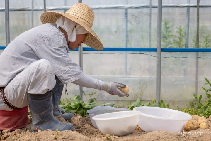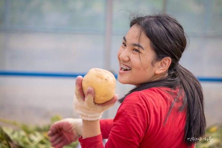 The potato harvest had been scheduled for today. By planting potatoes early inside the greenhouse, it was possible to harvest them a month earlier than regular potatoes. After reciting Words to Remember together three times, we received instructions from the farming team leader and began our work.