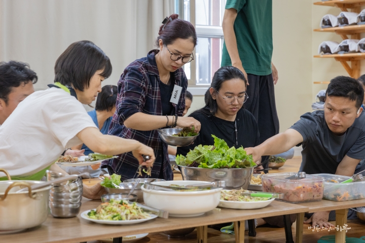 Since yesterday, some members of Jungto Society’s Youth Division have been staying at Dubuk Jungto Retreat Center, working on the farm with the Vietnamese youths. About 50 Vietnamese and Jungto Society youths joined the meal.