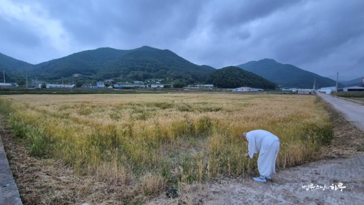 At sunset, Sunim headed toward the field where the wheat had been planted. He checked to see if the wheat had fully ripened and finished his day’s work.