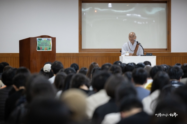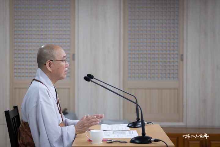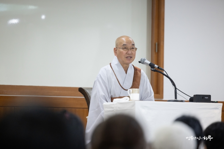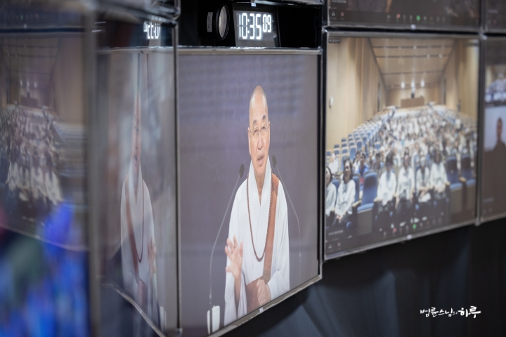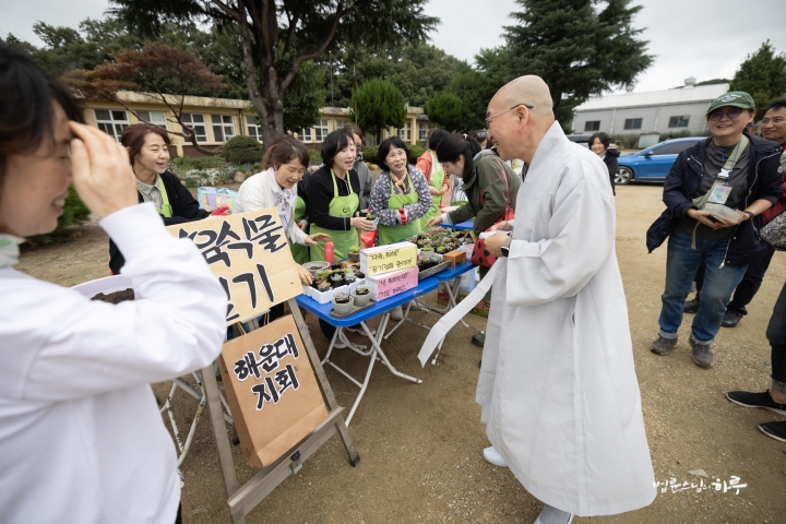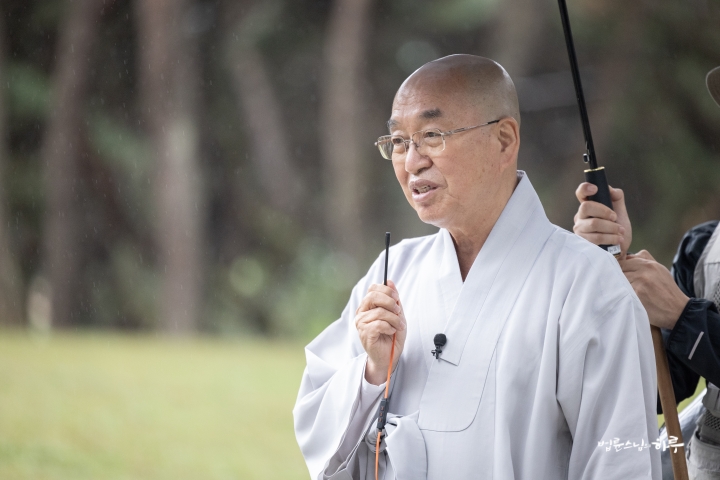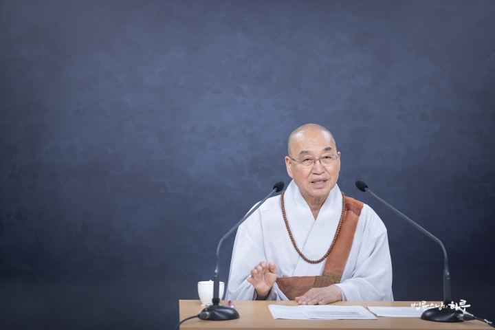 “Today, we are taking time to reflect once again on the environmental movement that Jungto Society has been pursuing since its foundation. When Jungto Society was established and began its first 10,000-Day Practice, we set four main objectives. First, on a global scale, we must prevent environmental pollution to prepare for the climate crisis. Second, on a humanitarian level, we must eradicate poverty. Third, on the Korean Peninsula, we must prevent the risk of war and achieve peace and unification. Fourth, individuals should be able to live happy lives through practice. Thus, environmental issues are embedded in the founding spirit of Jungto Society.