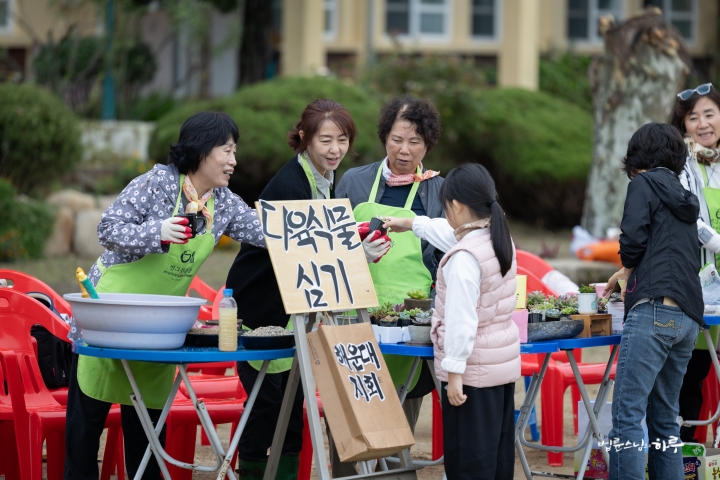 There were many fun booths such as making handkerchiefs, eating vegetarian food, experiencing soil composting, and eating rice cakes in containers. As they enjoyed each experience one by one, their awareness of environmental practices grew significantly.