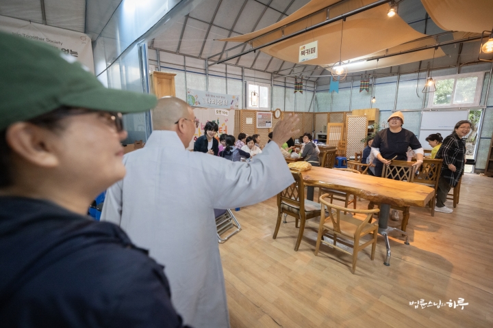 From 10 AM, Sunim joined Jungto Society’s Environmental Dharma Talk online from the broadcasting room at the Dubuk Retreat Center. For today’s event, people interested in environmental practices gathered at Jungto Society’s main temples nationwide.