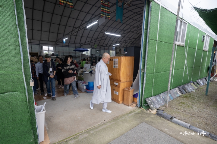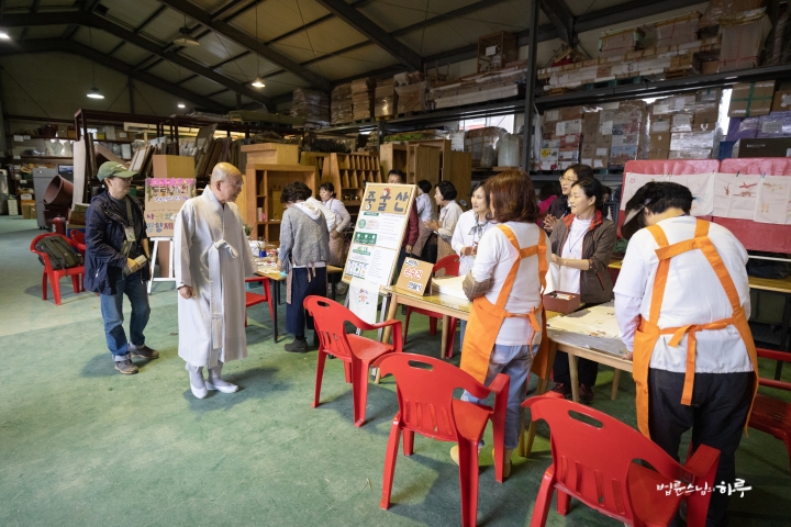 Sunim took a tour of the environmental booths set up at the Dubuk Retreat Center’s Saligo Center and JTS warehouse.