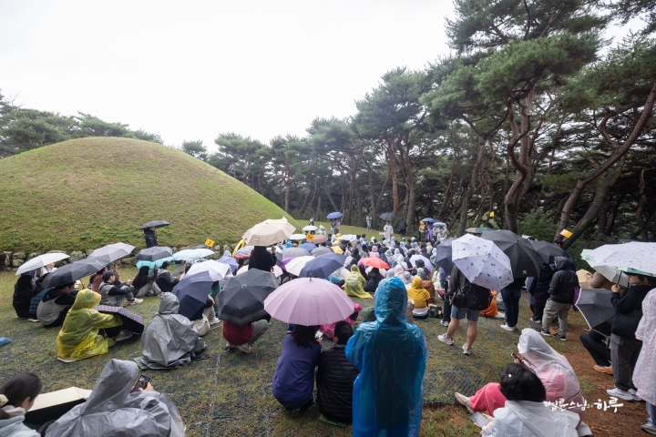 Leaving General Kim Yu-sin’s tomb, they arrived at Nangsan, which was considered sacred by the Silla people. They visited the site of Sacheonwangsa Temple, Queen Seondeok’s tomb, and Neungji Tower, built at King Munmu’s cremation site, in order.
