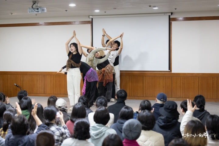 First, the group watched an opening performance prepared by the youth. Young people who had recently participated in the Seonjae Youth Program at Sujata Academy in India presented a dance performance.