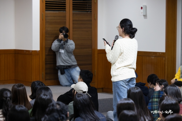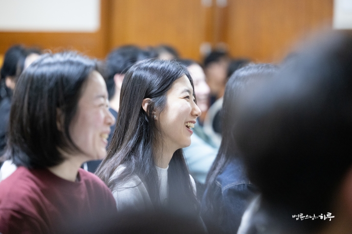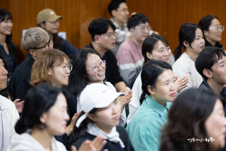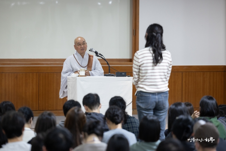 Then, a young person came on stage and energetically sang a song, after which Sunim began the Dharma Q&A. Various questions followed, covering topics such as dating, family, social life, mind, and history. One person sought Sunim’s advice, expressing fear of expressing their feelings after several unsuccessful blind dates.
