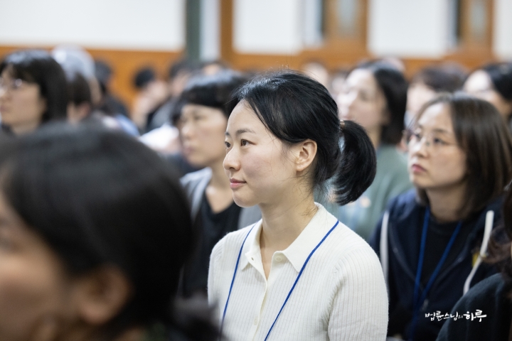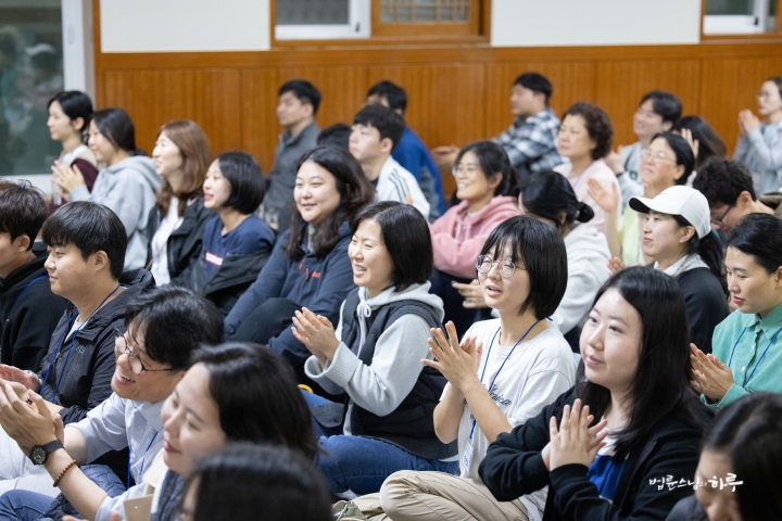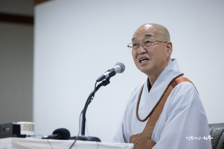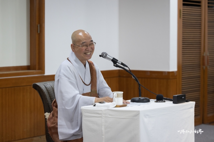 After leaving the Neungji Pagoda, Sunim took a bus to the accommodation. After dinner, everyone gathered in the auditorium at 7 PM for a Dharma Q&A session.