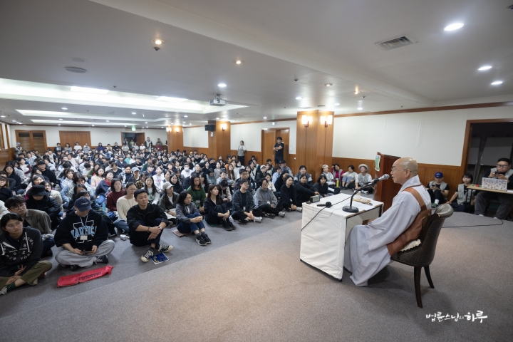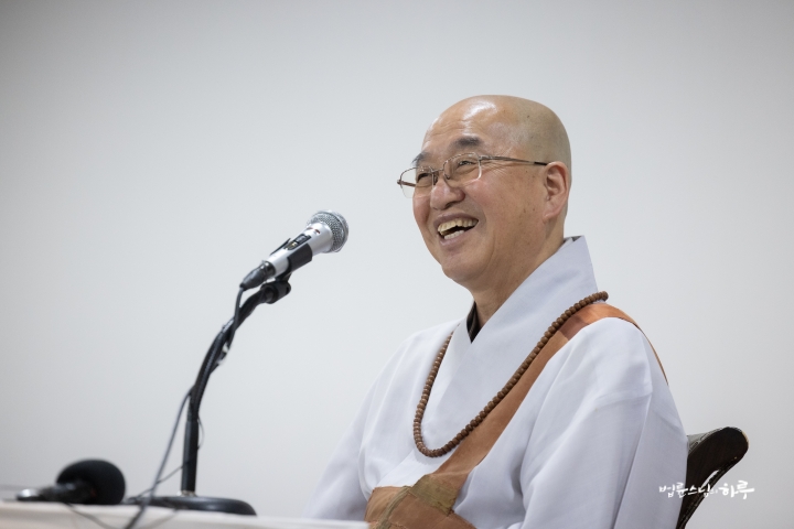 Two hours have passed since the Dharma Q&A began. The last questioner asked if Sunim had any message for young people regarding peace and unification on the Korean Peninsula.