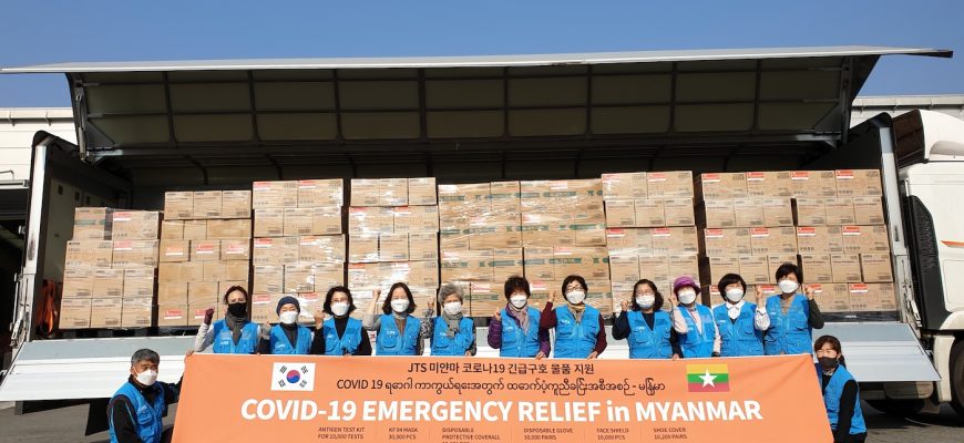 The Buddhist humanitarian relief organization Join Together Society Korea (JTS Korea), founded by the renowned Korean Seon (Zen) monk Venerable Pomnyun Sunim, working in cooperation with the International Network of Engaged Buddhists (INEB) and the Kalyana Mitta Development Foundation (KMF), has donated US$130,000 in COVID-19 medical relief supplies to Myanmar.