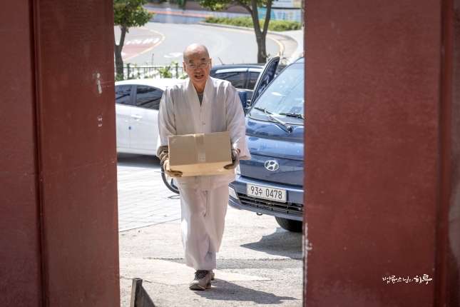 The South Korea-based Buddhist organization Jungto Society, founded by the renowned Seon (Zen) master and social activist Venerable Pomnyun Sunim,* continues its tradition of sharing Buddhist compassion with vulnerable communities. Ven. Pomnyun Sunim recently spent a day delivering organic agricultural produce to Jajae Palliative Care Hospital run by Buddhist nuns in the city of Ulsan; Joongsaeng-sa, a Buddhist temple in the city of Busan; and Aegwangwon, a residential center for the intellectually disabled on Geoje Island in the south of the Korean Peninsula.