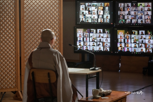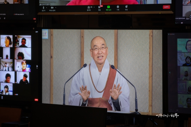 Sunim also clapped loudly, encouraging the questioner. Comments of encouragement poured in in the chat box.