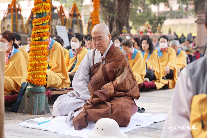 The revered Korean Dharma master and social activist Venerable Pomnyun Sunim recently led a cohort of 430 Buddhist practitioners on Jungto Society’s 34th annual pilgrimage across India and to Nepal, following in the footsteps of the historical Buddha to visit key sites connected with his life, spiritual practice, enlightenment, and Dharma teachings.