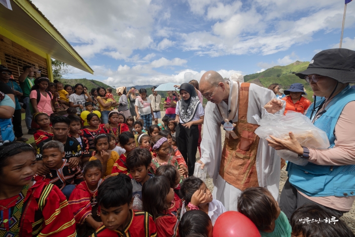 The revered Korean Dharma master and Buddhist activist Venerable Pomnyun Sunim accompanied a team of volunteers from the Buddhist humanitarian relief organization Join Together Society (JTS) to the Philippines from 12–18 December to officially inaugurate new schools established by JTS over the past year on the country’s second-largest island, Mindanao.