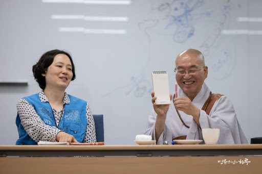 “We’ve organized this meeting to help you broaden your relationships in Korea. Unmunsa, Bulguksa, and Jungto Village Jajae Hospital, which you visited yesterday, represent one aspect of Korean Buddhism. I hope you can find partners with whom to network, taking into consideration the situation in your own country.”
