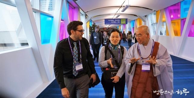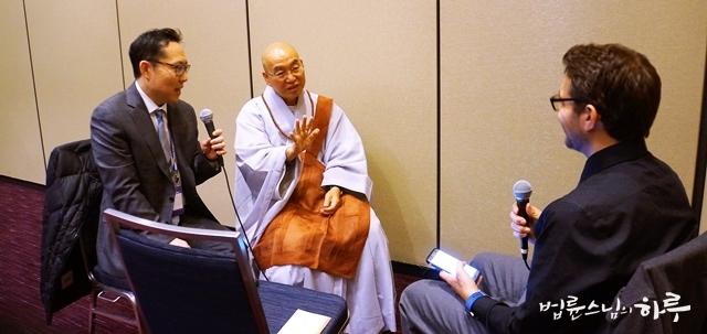 A: “I would say a better world for all of us to live together. Thank you very much, Ven. Pomnyun for joining us and for your hard work in saving sentient beings and the world which are core features of this emerging ecological civilization we are striving for. Thank you, Jason. You are an amazing interpreter. Thank you for being here as well.”