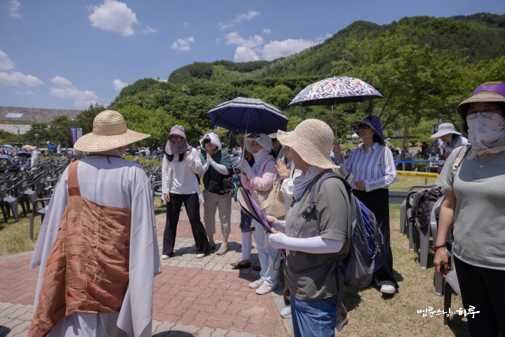 “I am truly grateful to hear that Master Yongseong blessed our nation’s future for the next 800 years and prophesied the prosperity of our nation. However, domestic and international circumstances surrounding the Korean Peninsula and our internal issues demand immediate attention and cannot be left as they are. War clouds loom over many countries worldwide, and according to experts, the Korean Peninsula is also facing an increasingly dangerous period. War destroys everything and must never be allowed to happen. I hope that today’s gathering serves as an impetus to preserve peace on the Korean Peninsula at all costs, and to unite us as one people living in this era, regardless of any challenges we may face. There are many more words I could share, but considering you have endured the scorching sun for so long, I will conclude briefly.”