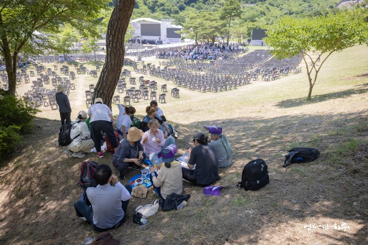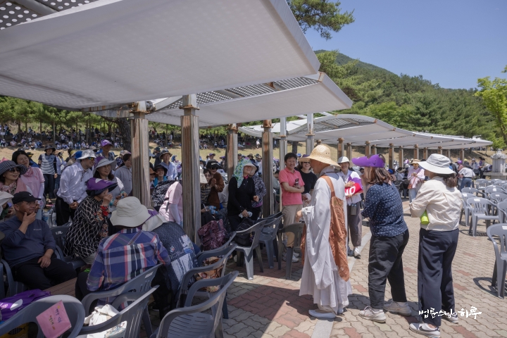 The June 13 Grand Dharma Assembly, to which so many people had devoted so much effort, has finally come to an end. Sunim walked among participants who were eating their packed lunches, expressing gratitude. After circling the venue, bowing in acknowledgment, he took the microphone and thanked them once again.