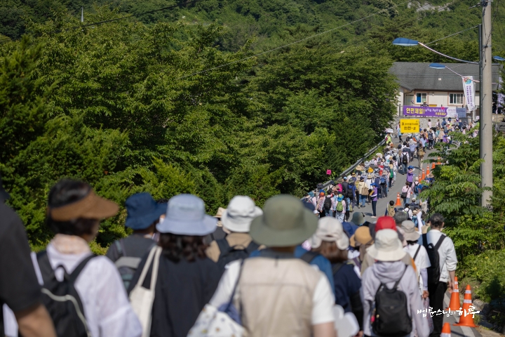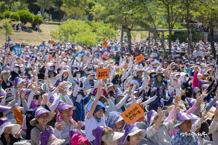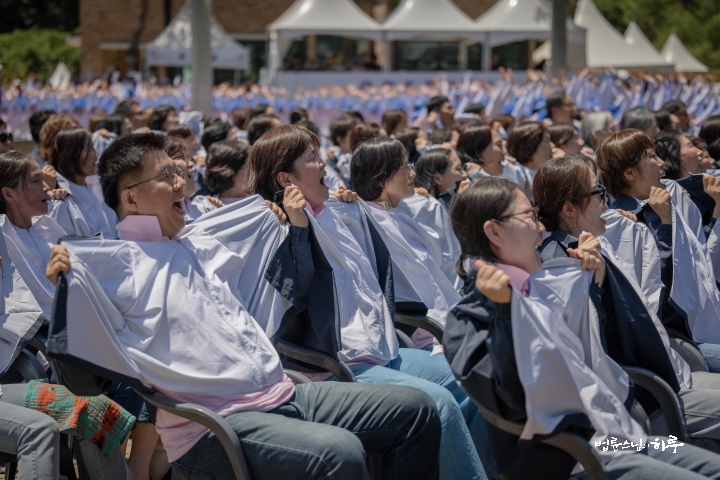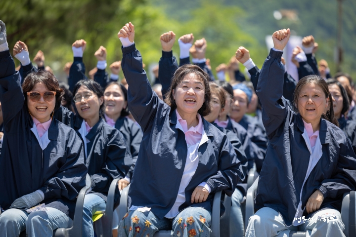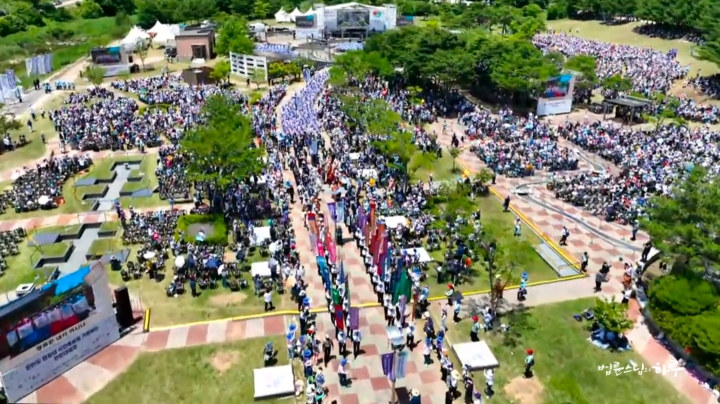 As dawn broke, buses from all over the country started to arrive, one after another, at 7 a.m. A total of 250 buses, assigned to different drop-off points by region, unloaded passengers at staggered times. Thanks to the meticulous preparations, 10,000 participants smoothly made their way to the event venue, Mulbit Park, without incident.