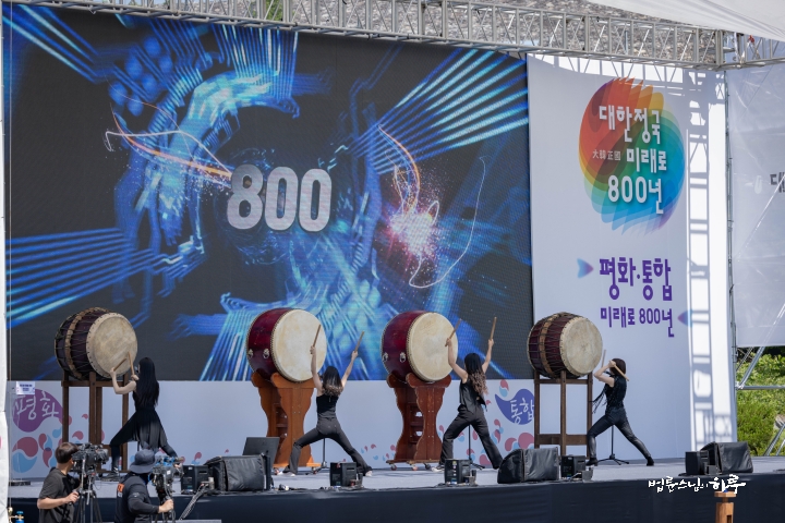 In the footage captured by the overhead drone, the words “Peace and Unity”, “Daehan Jeongguk,” and “800 Years Toward the Future” appeared.